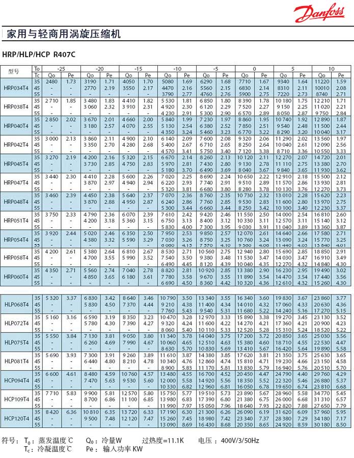 丹佛斯HRP/HLP/HCP (R407C) 2.5HP-10HP